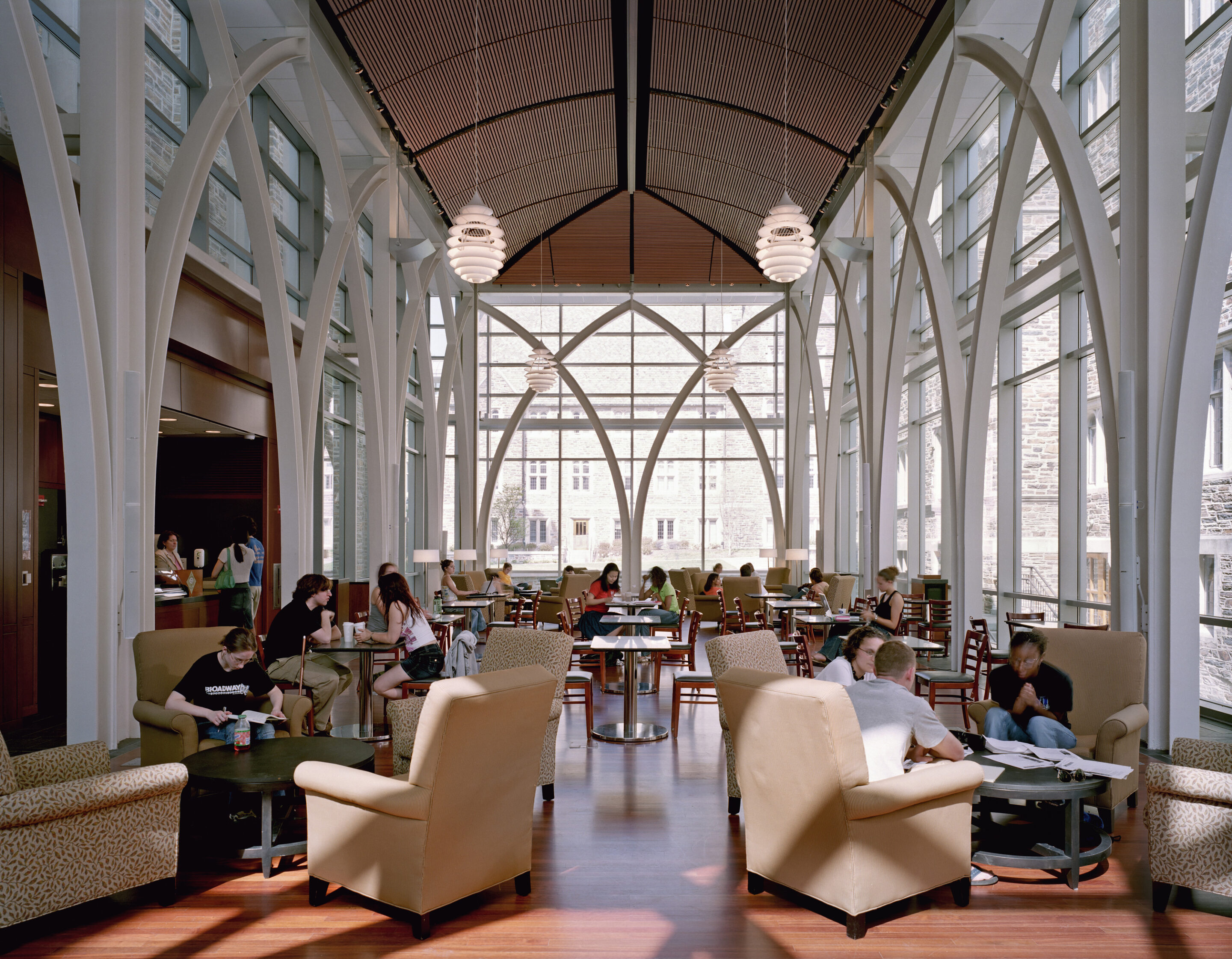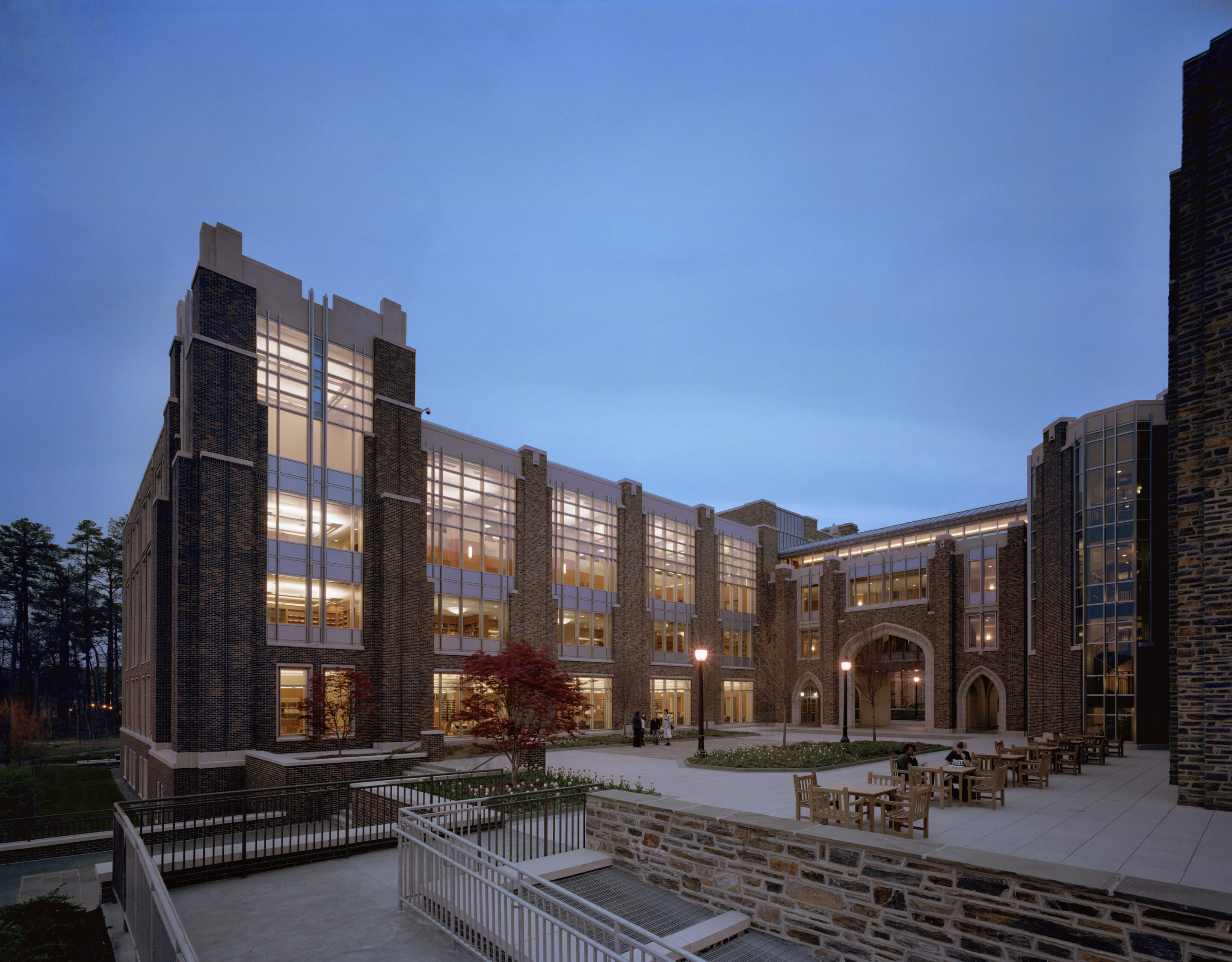 The intellectual crossroads of one of the country’s leading research universities, Duke University’s libraries provide comprehensive, integrated academic resources and services. The libraries have been transformed through a series of programming, planning, design, and construction projects that have spanned more than a decade, fulfilling a vision for the institution set forth in our library master plan. This holistic learning environment of the Perkins-Bostock complex responds to a wide-ranging demand for services, with robust research facilities and environments for solitary and shared scholarship. Included are the special collections of the Rubenstein Library, which are complemented by exhibit and event space, and the social gathering spaces of the jewel box-like von der Heyden Pavilion.