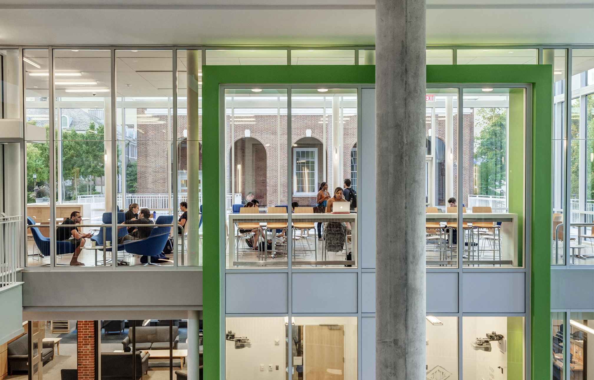 The Brody Learning Commons furthers the Eisenhower Library’s role as the intellectual, social, and physical heart of the Homewood campus and gives users a portal to the physical and virtual resources of the Sheridan Library system. The technology-rich Learning Commons includes group study spaces, seminar rooms, and a state-of-the-art lab designed to integrate the role of scientists into the field of paper and manuscript conservation.